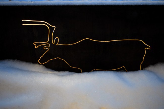 När jag promenerade till parkeringen tog jag vägen ner från Stortorget mot Badhusparken. Då upptäckte jag den här renen. Jag har gått här ett antal gånger de senaste månaderna utan att lägga märke till den. Det fanns fler likadana block mellan väg och gångbana och nästa gång ska jag se om det finns fler renar eller om det kanske finns andra figurer också.