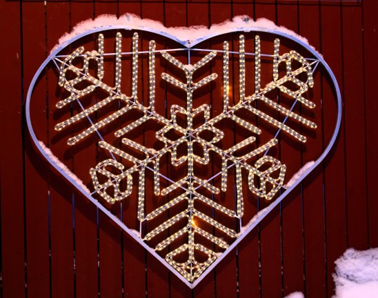 Mitt emot parkeringen finns en byggnad med bastu och omklädningsrum för badande personer. Där lyser Jämtlandshjärtat så fint. Jag har för mig att den här symbolen togs fram för ett antal år sedan då Östersund arrangerade VM i skidskytte. Men jag kan minnas fel och jag hittar inget om det när jag googlar.