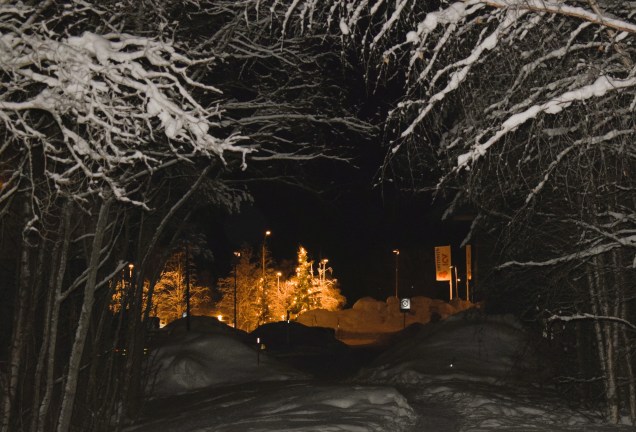 Igår morse gick jag ut redan vi sjutiden och det var ganska mysigt med en promenad i riktigt mörker. Det blev bara den här bilden och det kanske ni förstår när ni ser kvalitén.