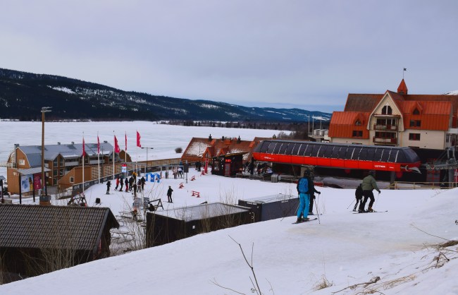 Men nu var liften öppen. Det är en väldig skillnad på hur mycket folk det är här den här veckan mot hur lovveckorna ser ut. Men vi upplever att det också är färre människor här den här veckan än vanligt så kanske ekonomin hindrar många. Det är svindyrt att köpa liftkort och hyra utrustning så många familjer har nog varit tvungna att välja bort den upplevelsen.