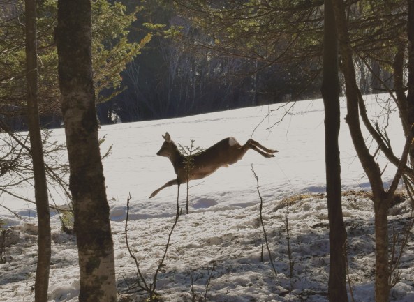 • Tack Anna! Det var mer tur än skicklighet att det över huvud taget syns att det är ett rådjur som hoppar 😀 Det var ett snabbt övergående moment. Visst är det bra att rådjuren får hjälp med att hitta mat och jag har sett många rådjur så bevisligen har ett stort antal klarat sig bra i vinter.