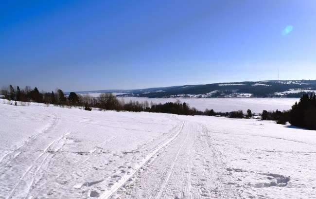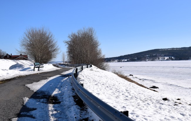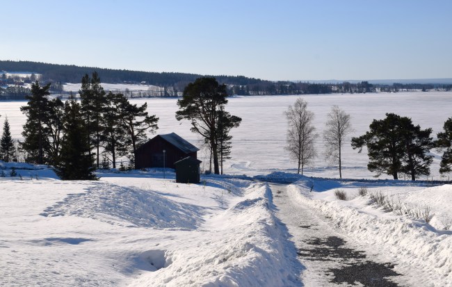 Jag gick ner mellan två hus och funderade lite på om jag skulle våga mig ut på isen, trots att jag i förra inlägget skrev att nu skulle det inte bli fler promenader på sjön. Jag bestämde mig för att avvakta några dagar till och låta kylan göra sitt. Hela den här rundan har ni hängt med på förut men det var länge sedan jag tog mig runt hela vägen.
