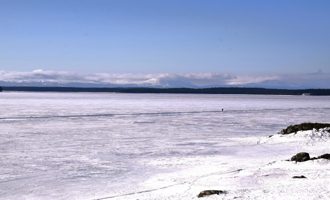 6. Vilka härliga vårvinterbilder! Det är ett alldeles speciellt ljus den här tiden när solen skiner över snön. Ett bländande vårljus. Så härligt. Och så bra att du nu börjar känna dig bra i ländryggen så att du kan gå dina sköna promenader igen. Tycker du fick fina bilder på rådjuren men jag fick leta länge innan jag hittade det som var så långt borta. Och var försiktig innan du eventuellt ger dig ut på isen.