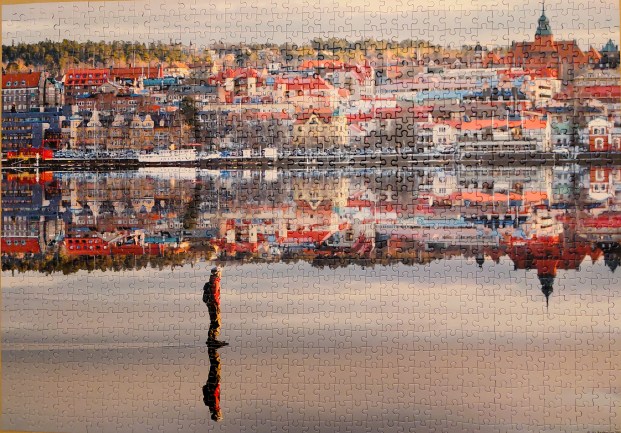 När jag nu är igång och visar pussel så får även ”skridskoåkaren”, som motivet heter, vara med. Ingen har bett om att få det så det hamnar i någon låda tills jag samlar ihop ett lass till någon second handverksamhet. Ni kanske känner igen vyn mot Östersund. Ett ganska vanligt pusselmotiv här i kommunen.