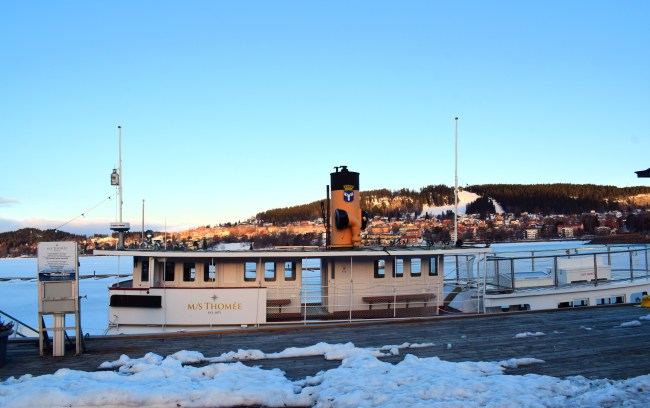 Lågt vatten i Storsjön och Thomée väntar på issmältning och påfyllnad av vatten så att den kommer upp i rätt nivå vid kajen.