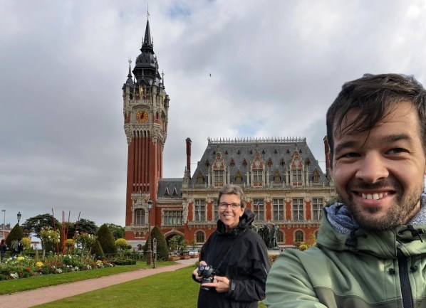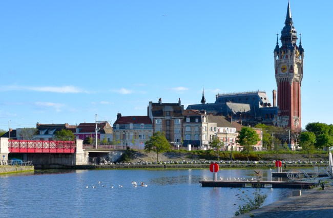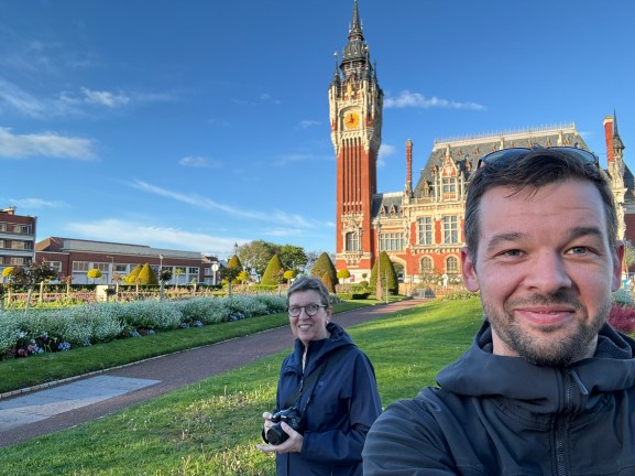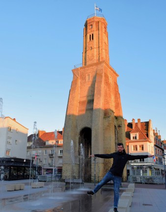 Från hamnen i Travemünde åkte vi mot dagens etappmål Calais, en resa på ca 80 mil. Märkligt nog har jag inte en enda bild från den resan och inte min son heller. Vi stannade så klart ett antal gånger för att tanka, äta och sträcka på benen men jag tror att vi var för fokuserade på målet för att tänka på att fota och dessutom åkte vi nästan bara på motorvägar. Vi var nog helt enkelt inte inspirerade utan ville bara komma fram. Och fram kom vi ca 19.00. Så fort vi hade packat in våra väskor i lägenheten gick vi ut för att upptäcka i alla fall en del av Calais. Det vi i första hand ville se var stadshuset och dess torn. Alla som har varit i Calais känner säkert igen sig här.