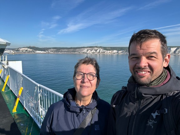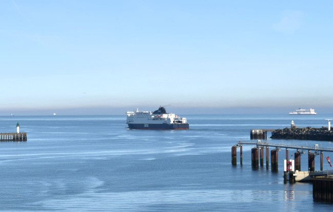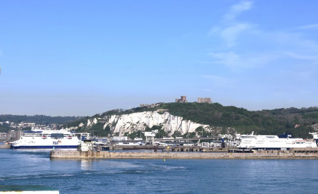 Färjan från Calais till Dover gick 08.05 och vi behövde vara på plats minst en timme innan avgång. Självklart var vi i hamnen i god tid innan den incheckningstiden. Vi fick visa våra pass flera gånger och svara på ett antal frågor men i tullen viftades vi förbi.