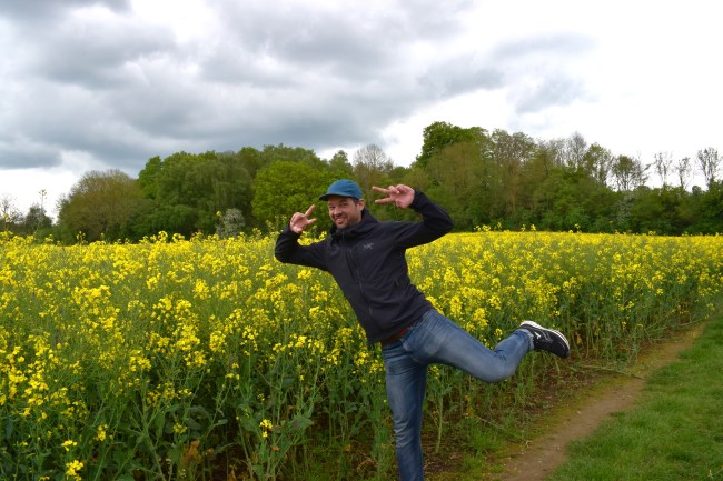 Vi hittade ett område med vandringsleder och stannade till för att få röra på oss lite. Det blev inte en lång vandring men en skön promenad vid rapsfält…