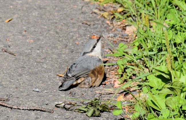 Jag gick en liten bit till och då blev det mer show. Den här lilla nötväckan hoppade omkring, flög lite grann och återkom till gångbanan varje gång. Även i det här fallet hoppas jag att mamman fanns i närheten.