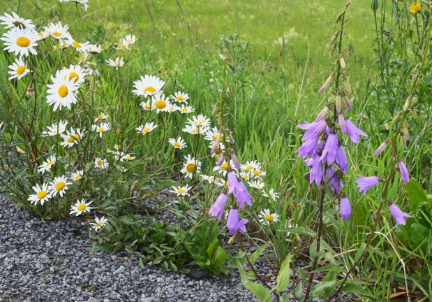 Vissa blommor blommar väldigt länge. T ex midsommarblomster blommar från maj och in i juli. Jag har inte tänkt på om blomningstiden har förändrats mycket men kanske märks det mer ju längre söderut man kommer. En del blommor var överblommade när jag kom hem från roadtrippen och nu märker jag att de senare växterna börjar sätta fart. Här har inte rallarrosen betytt något slut på sommaren eller blomningsperioden så länge jag kan minnas. Kanske har bondepraktikan inte stämt så bra någon gång 😀