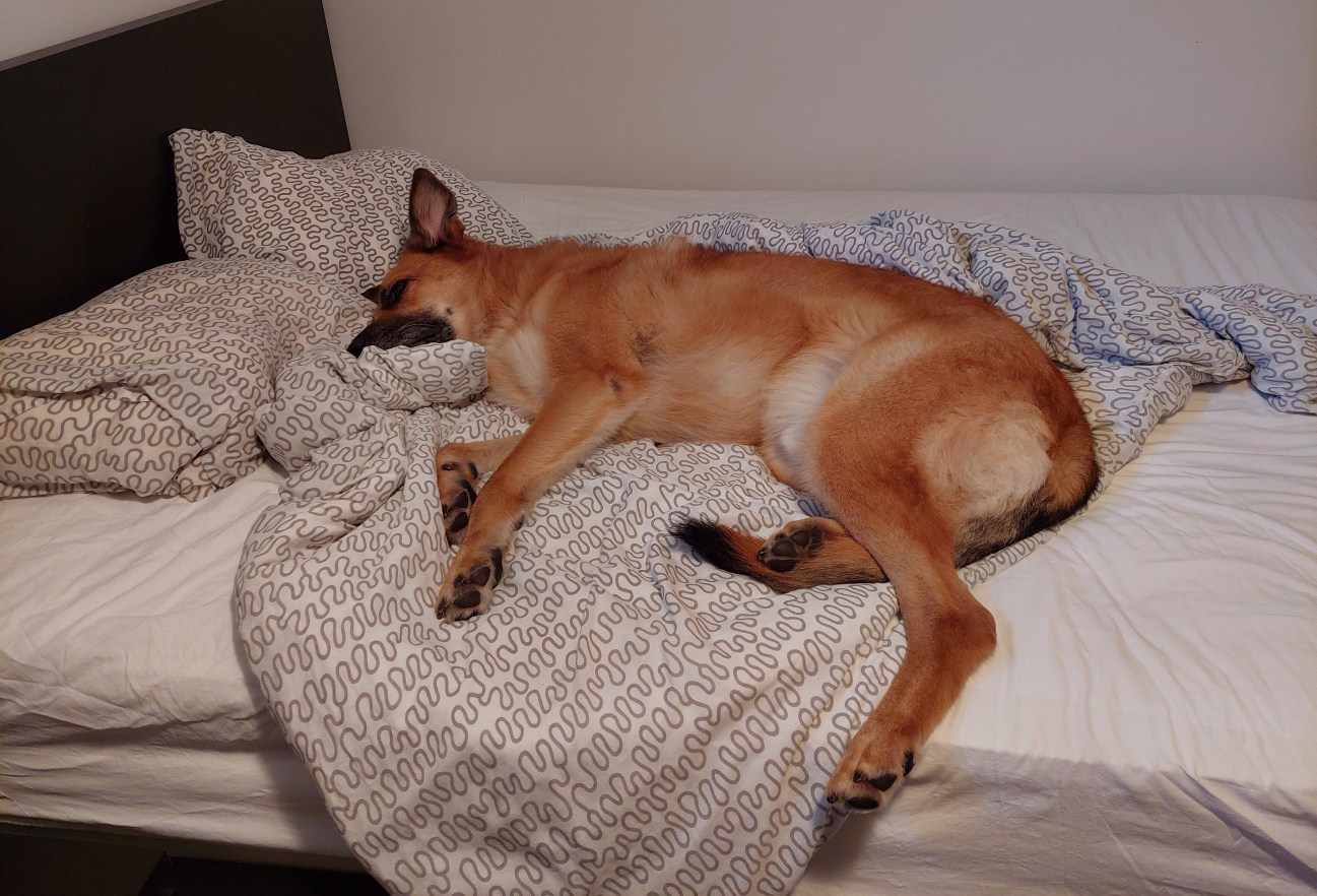 8. Haha vad roligt att Rocky följer dig i spåren och vill sova med dig. Jag sover också i källaren när jag är hos Dante och han går också efter mig när jag går ner. Fast han sover inte hos mig 😊