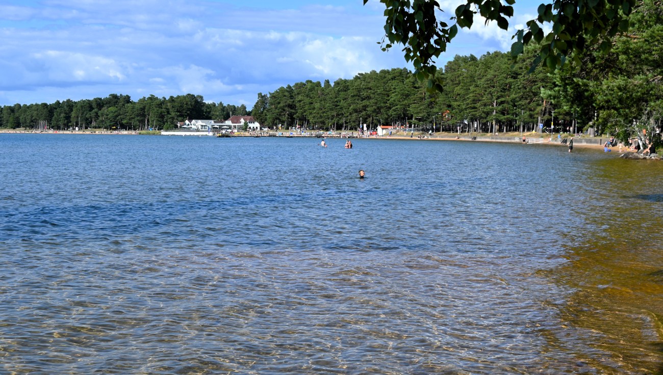 Vi tog en kvällspromenad vid Varamobadet. Hundar får inte vistas på själva badstranden, som just nu är väldigt liten pga högt vattenstånd, men där jag stod och tog den här bilden var det fritt fram för badsugna vovvar att ta sig ett dopp.
