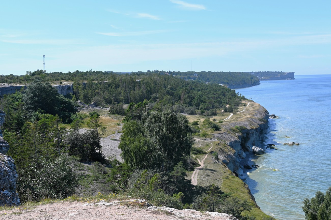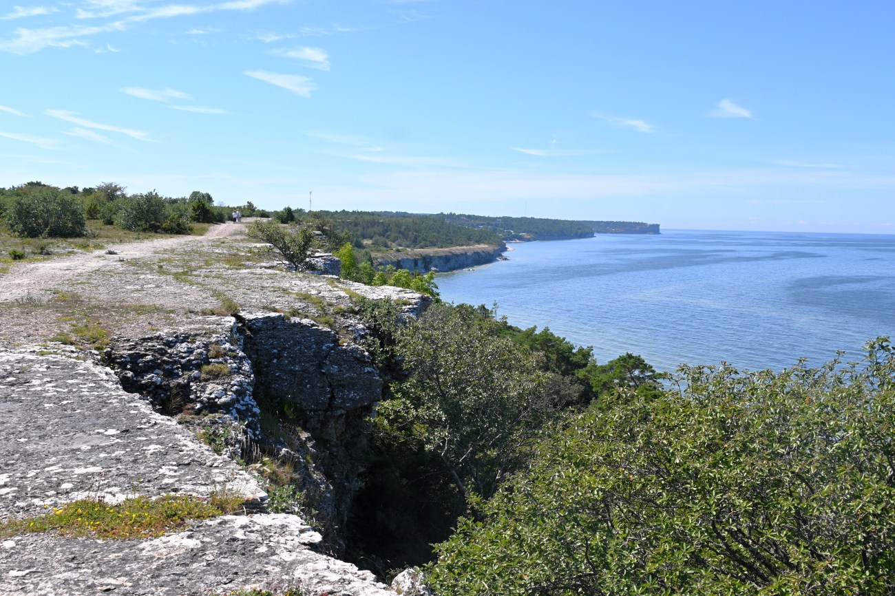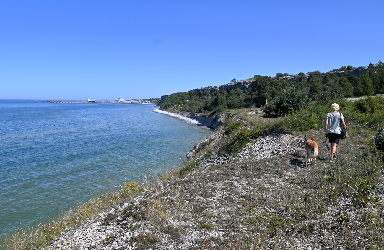 Alldeles utanför Visby, söderut, ligger naturreservatet Södra hällarna. Där ville vi fördriva tiden med en skön promenad och naturligtvis tänkte vi att Rocky skulle få njuta av flera bad. Det var varmt och solen gassade så det behövde han.