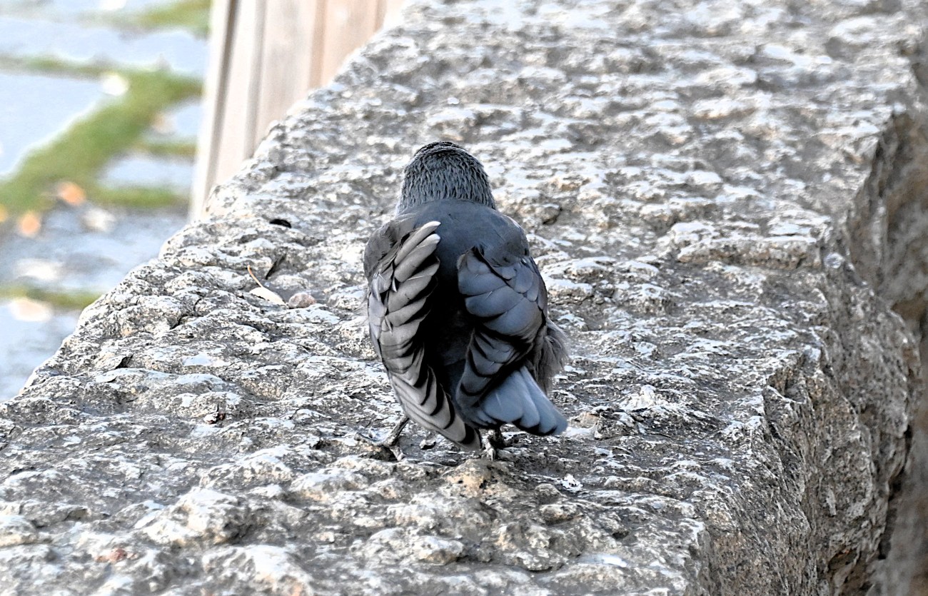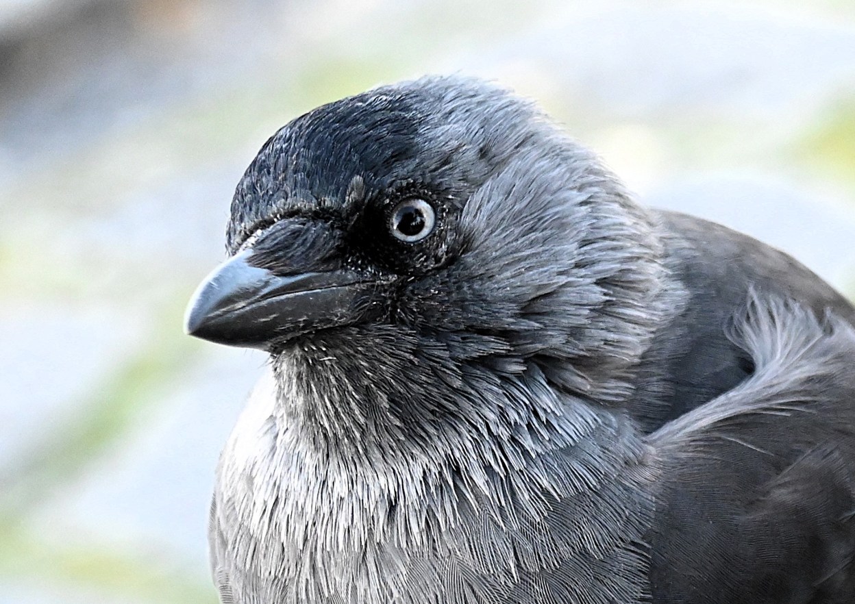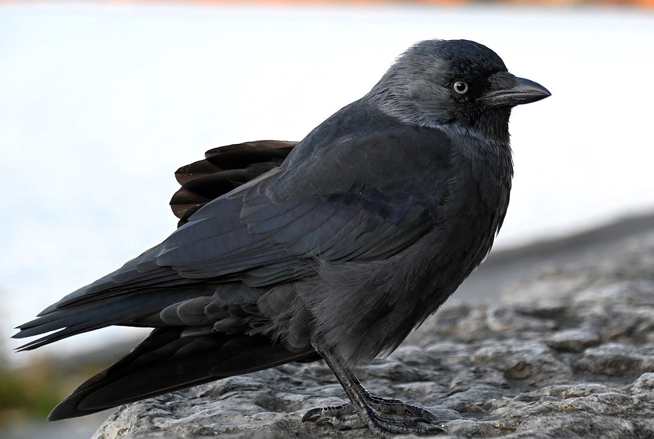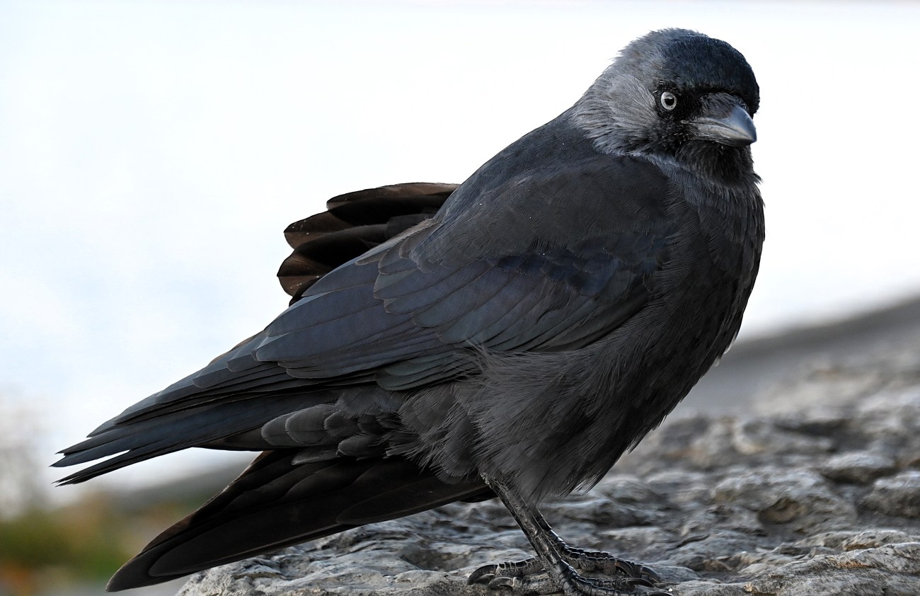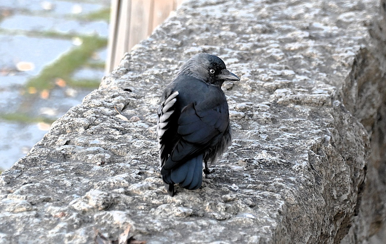 Lite längre fram ställde jag mig vid muren och tittade ut över sjön och då kom en kaja trippande utan att visa minsta rädsla. Men jag kunde inte röra vid den och ja, jag försökte försiktigt sträcka fram handen för att kanske få lite närkontakt. Men då ryggade kajan lite. Hade jag haft något ätbart skulle den nog ha ätit ur min hand.