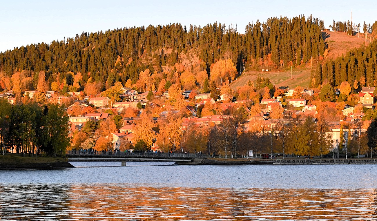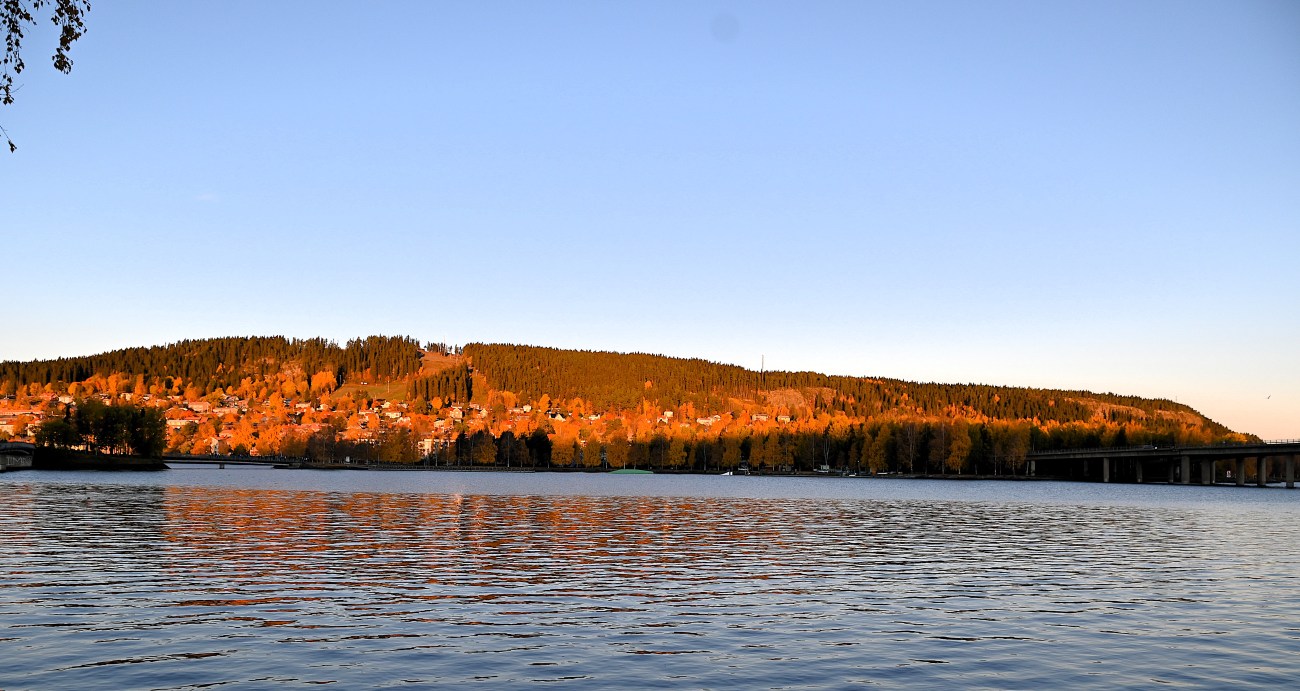 Tack Znogge! Just när solen går upp och når Frösön så är det väldigt vackert. En nästan perfekt höstdag. Det enda som fattades var en spegelblank sjö.