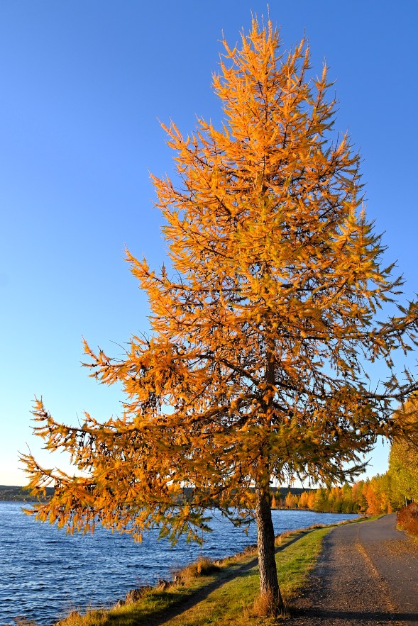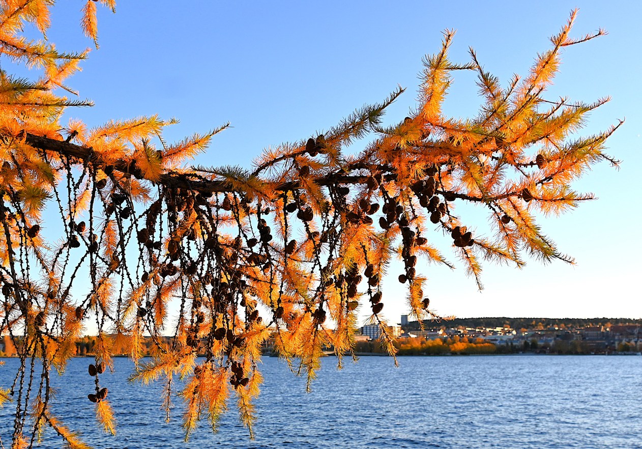 Lärken har fortfarande kvar alla sina gyllene barr.