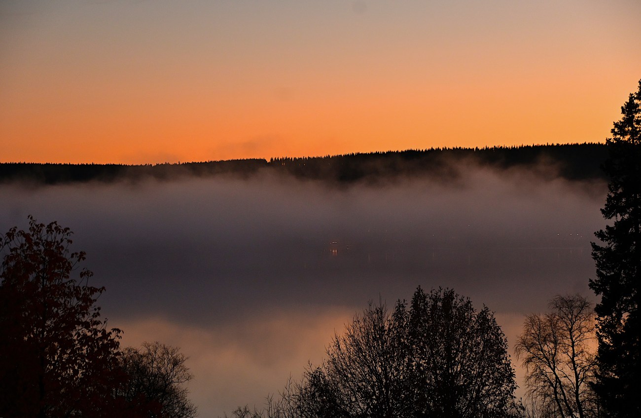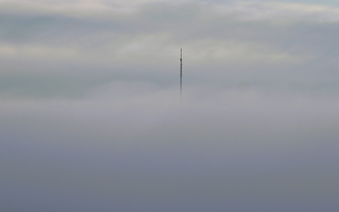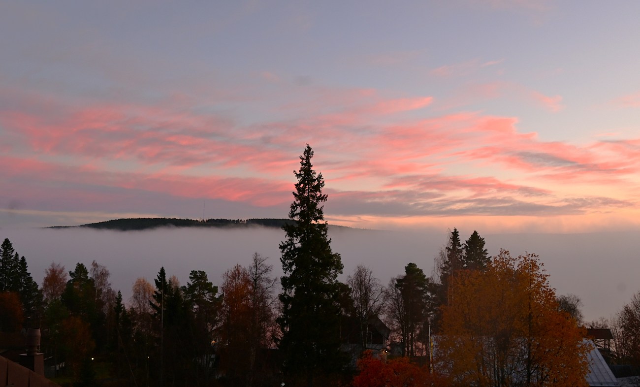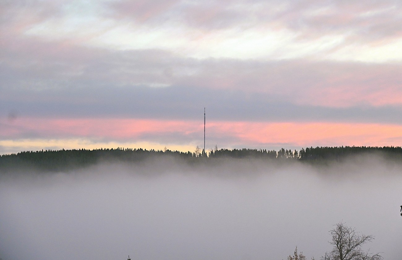 Igår skulle det ha varit solsken och blå himmel men dimman låg tjock hela dagen. Jag åkte till sjukhuset för att göra en datortomografi och det märktes på den långsamma trafiken att det var ovanligt tät dimma. Sent på eftermiddagen började något hända och det första som syntes en bit bort var masten på Annersia.