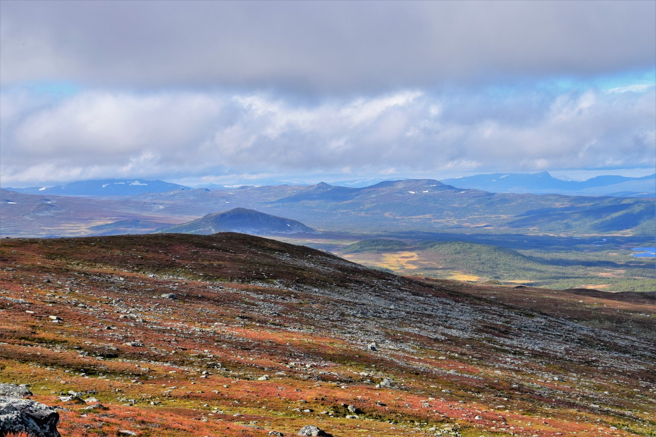 Under sommaren fick jag besök av först min yngsta dotter och senare min son och vi gjorde en del utflykter men inget som kan räknas som resor och därmed platsar de inte här. Det är lite synd för det blev en hel del fina fjäll- och naturbilder. Men det blev en resa till och efter en viss tvekan bokade jag boende för fyra nätter längs Vildmarksvägen och i början av september gav jag mig iväg. Min tvekan berodde både på funderingar kring värk och ork och även på om det skulle bli jobbigt att resa ensam, för första gången sedan jag blev änka. Jag skulle dessutom återse en del av det jag och min man hade upplevt så nostalgiskt skulle det bli. Vilken tur att jag bestämde mig för att åka för det blev en superhärlig upplevelse både vad gäller väder och vad jag fick vara med om.