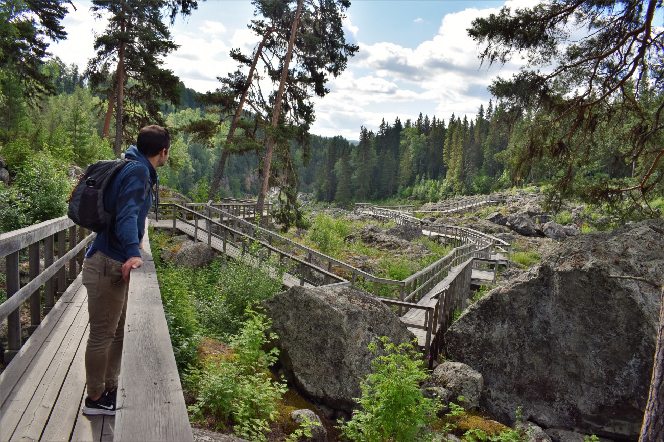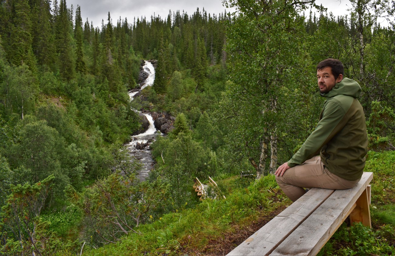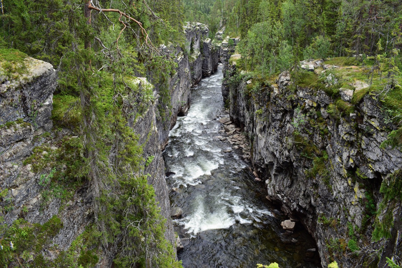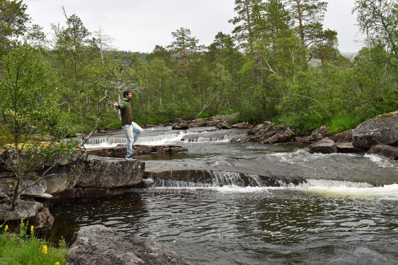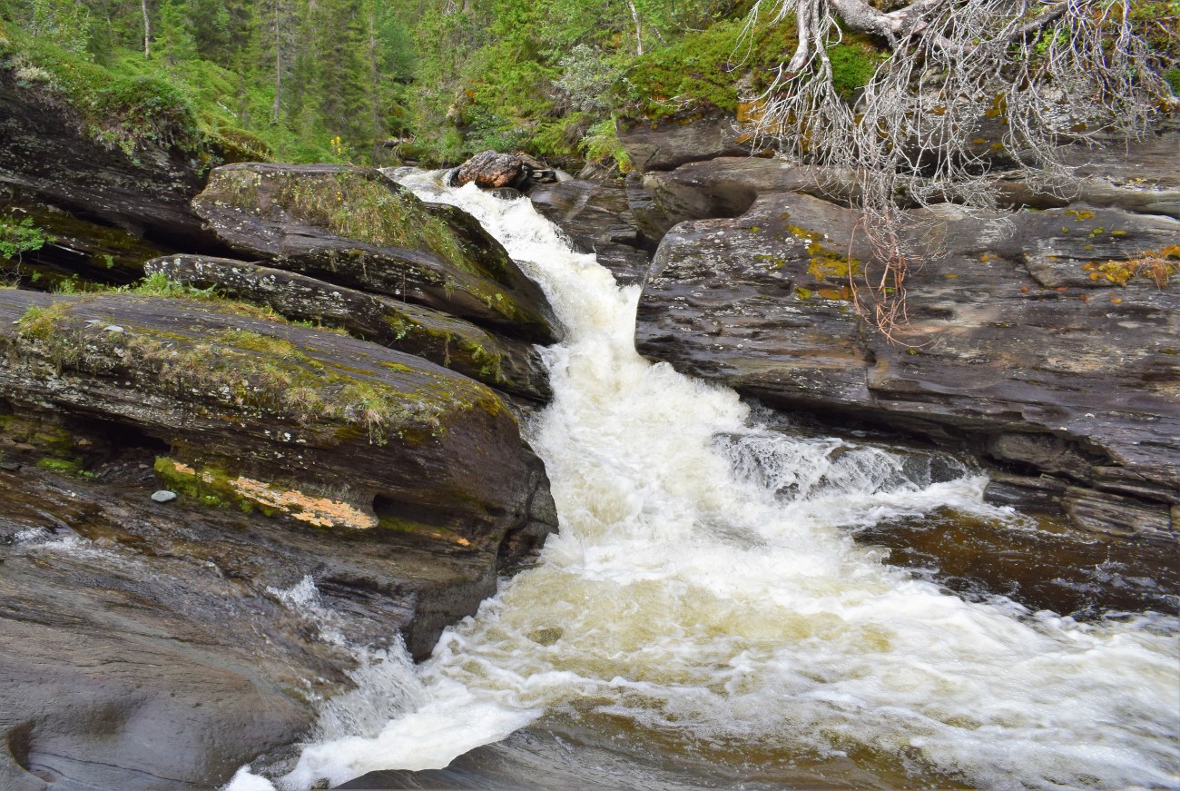 Efter att ha sovit gott ville min son gärna väcka upp fler minnen, den här gången från en skolresa. Vi parkerade vid slalombacken i Klimpfjäll och tänkte bara gå en liten runda. men ganska snart kom vi in på en led som heter sju forsar. Den måste vi ju utforska. Vi funderade på vad som definierar en fors för vi ville hålla räkningen. Vi konstaterade att oavsett vad definitionen är så fanns det helt klart fler än sju forsar.