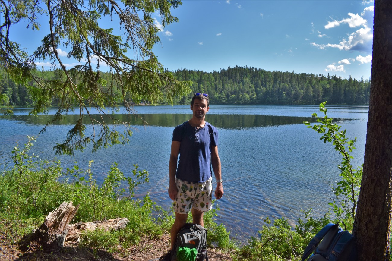 Vi kom till Balesuddens naturreservat och efter en ganska lång men väldigt fin vandring var vi framme vid en tjärn, Balestjärn, med väldigt klart vatten. Här badade vi båda två.