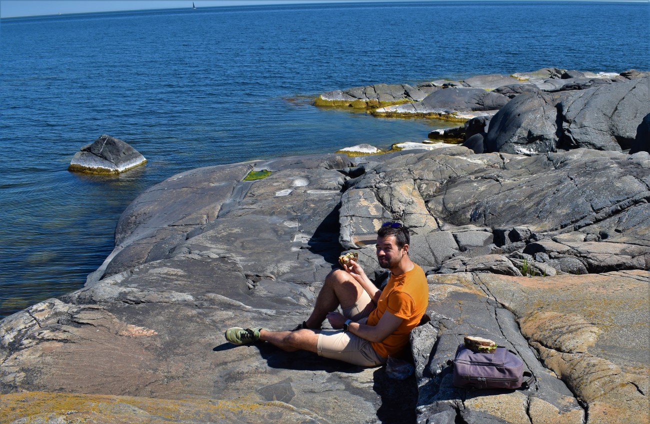 Nästa dags naturupplevelse fick vi när vi följde en led i naturreservatet Bjuröklubb. Vid fyren stannade vi och åt vår matsäck på klipporna. När jag tittar tillbaka på den här sommaren inser jag att vädret oftast var på vår sida, när det inte var lite för varmt.