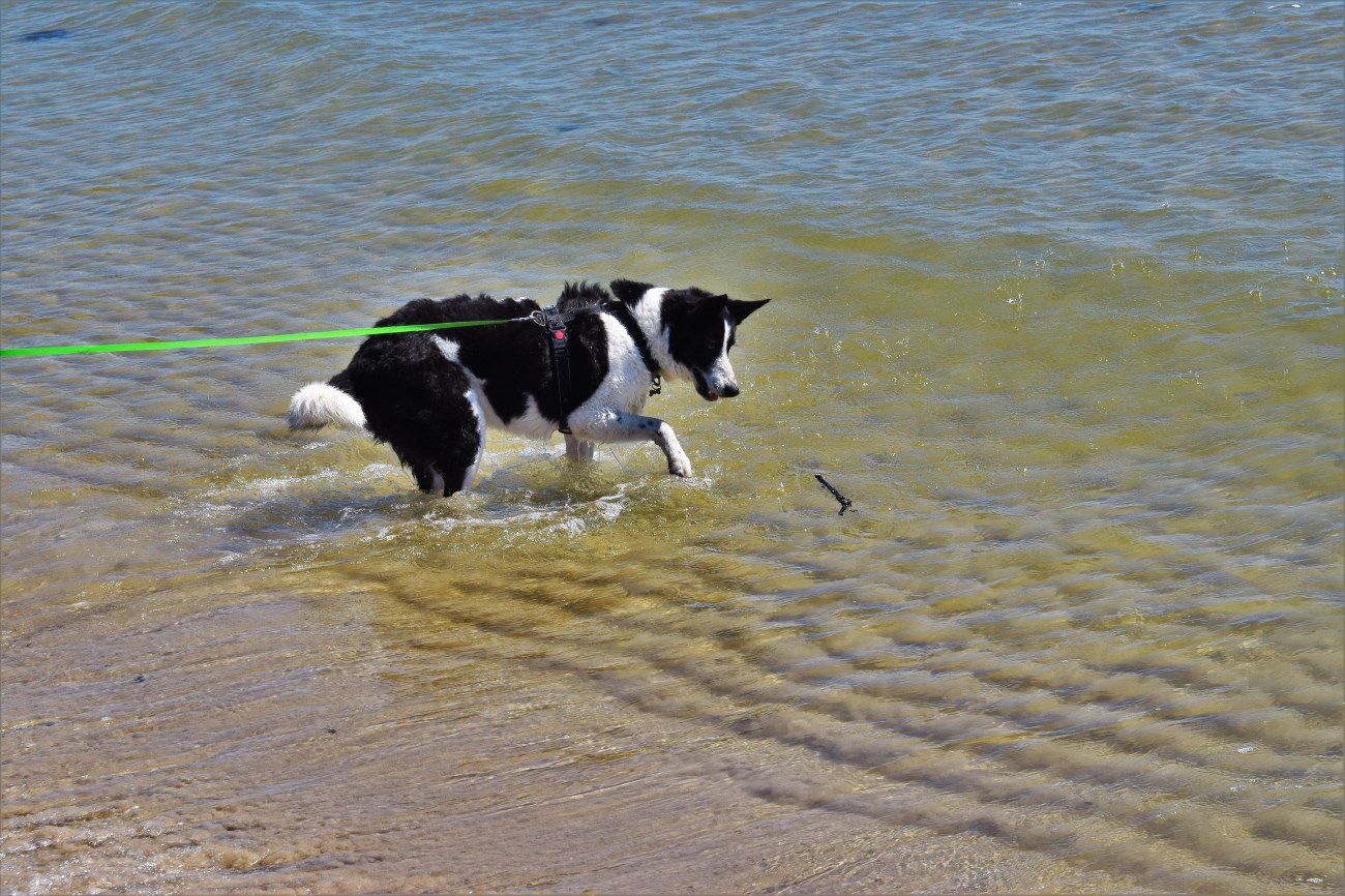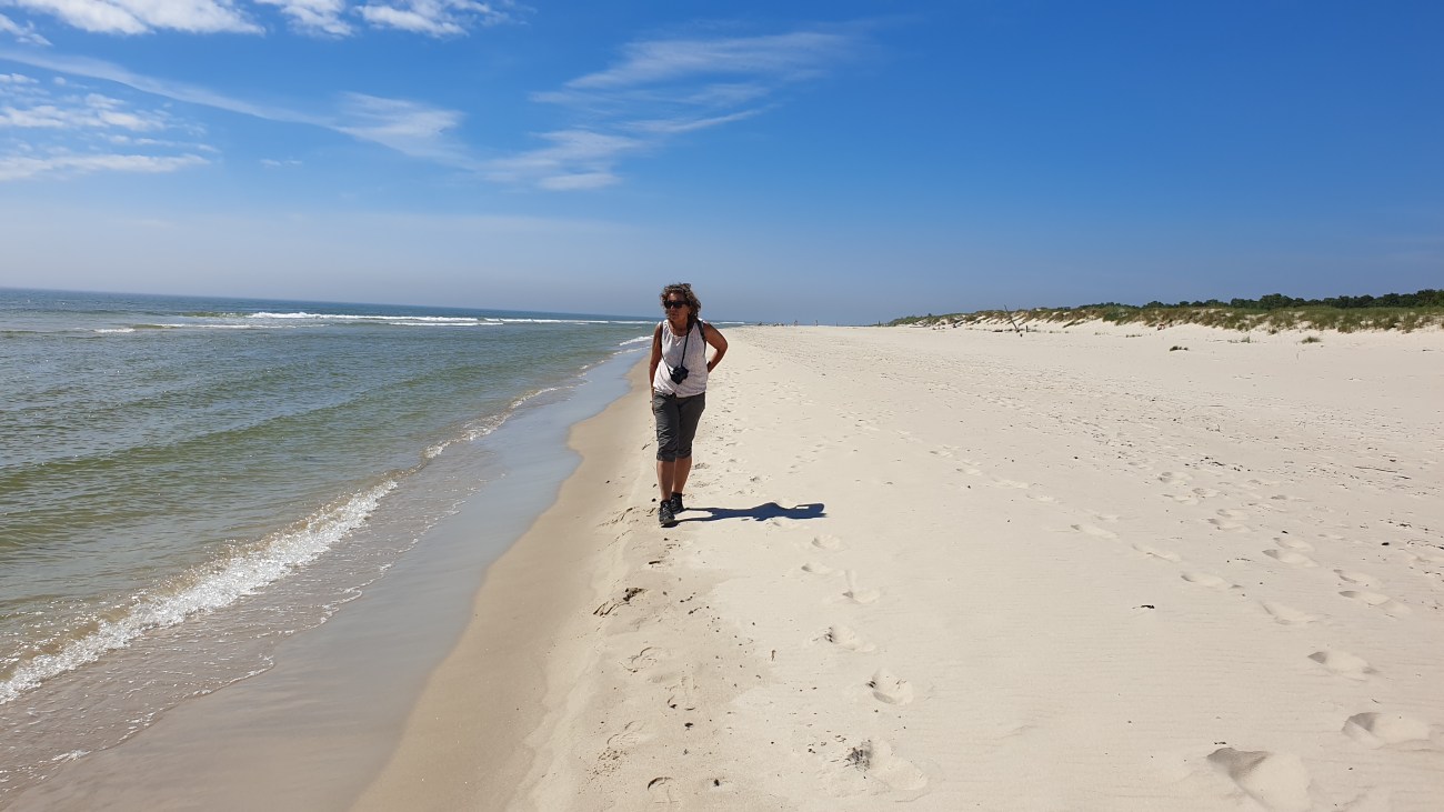 Vi fortsatte mot Sandhammaren, en strand som anses vara Sveriges finaste med en vit, finkornig sand som sägs sakna motsvarighet. Roddy var inte välkommen på stranden men vi gick bland sanddynerna längre bort tills vi inte såg några människor och då fick en glad vovve doppa tassarna.