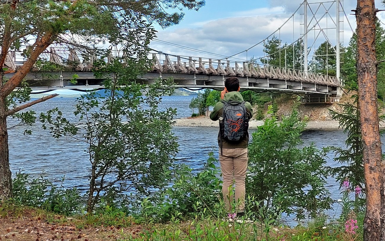 I Storuman var det min son som hade en del minnen. En tjej han var tillsammans med ganska länge kom härifrån. Därför hängde jag med på det som han tyckte var viktigt och det var den här hängbron och järnvägsstationen. Trevligt att få se dem och dessutom få höra små berättelser.