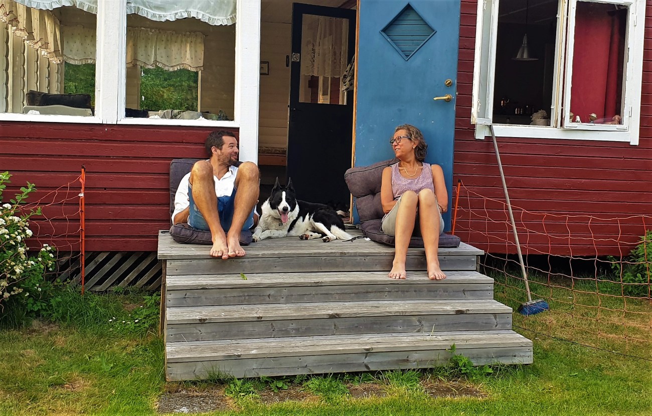 Någon dag senare packade jag, min syster och Roddy in oss i bilen igen och for till Målsånna, vid Anebysjön i Småland, Vi såg fram emot en lugn och skön vecka med inga som helst krav och så blev det. I alla fall nästan för min syster hade en del jobb hon behövde göra. Ni ser ju hur perfekt vi bodde under den alldeles för varma sommarvecken, en annan stuga än sist. Flera dagar var det 32 grader dagtid och då satt jag mest och flämtade och var rejält påverkad. När det på kvällarna ”bara” var 28 grader kunde jag andas och börja fungera igen. Vi badade så klart och det var tur att vi hade så nära till en liten privat badplats.