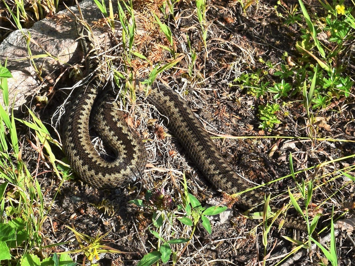 Sådana här rackare finns inte här på Frösön eller runt Storsjön och det är jag glad för. Roddy kom väldigt nära både den här och en annan huggorm vid olika tillfällen men som tur var gick det bra.