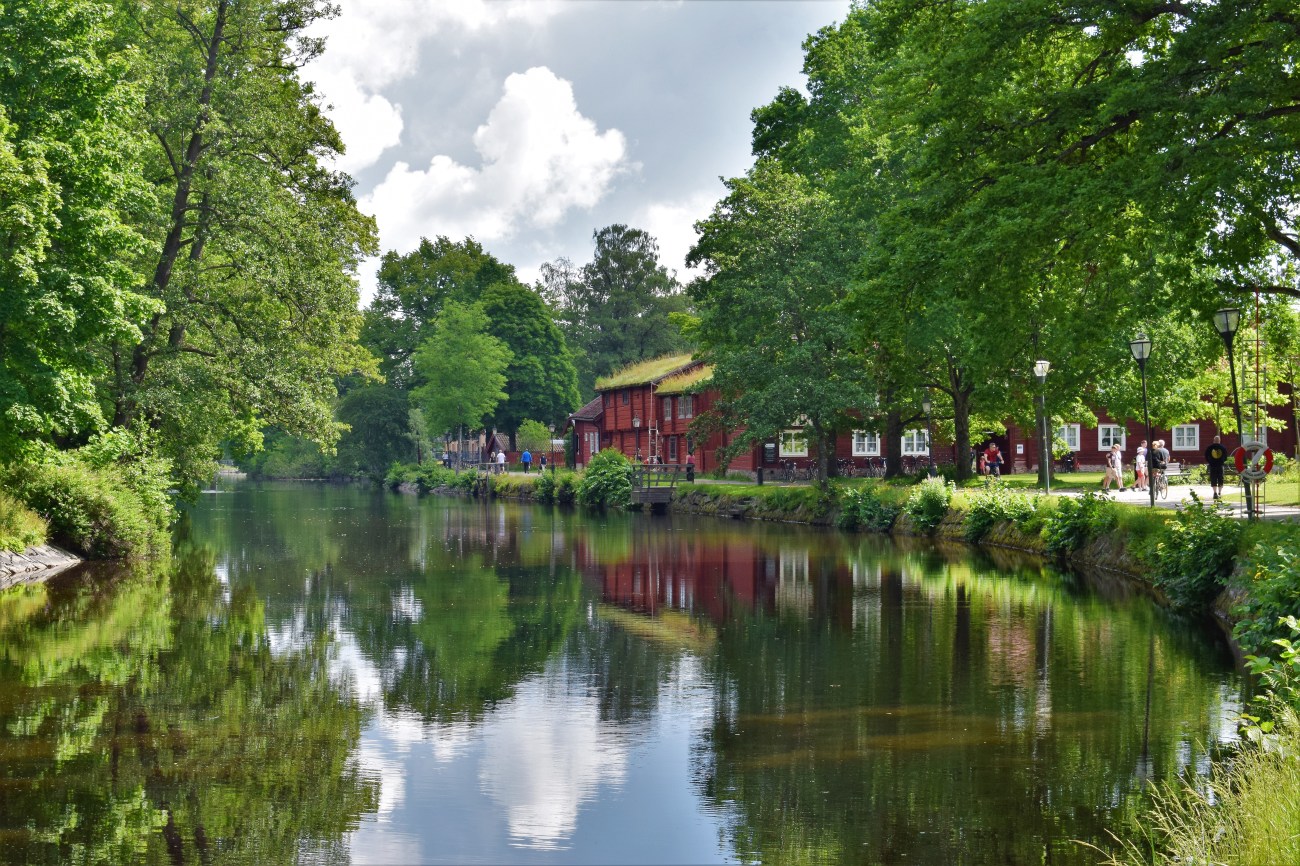 Jag hade bokat en stuga två nätter norr om Leksand. Jag ville för en gångs skull inte bara komma, sova och åka vidare på morgonen nästa dag. Jag gjorde så gott jag kunde för att se olika delar av staden och naturen runt omkring. Vy från naturum.