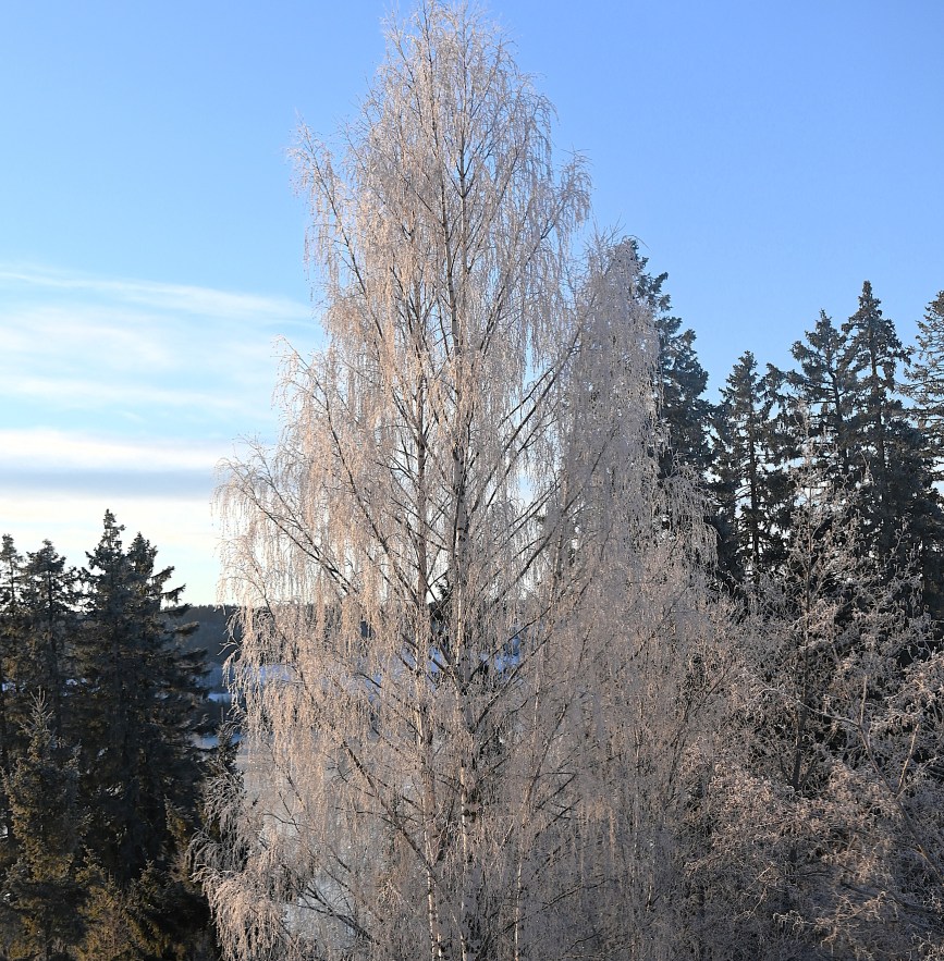 Det gäller att passa på när rimfrosten är här för den försvann lika fort igen. Nu är det snö på träden men även den kommer att försvinna av tövädret nästa vecka. Det har verkligen gått fram och tillbaka i vinter.