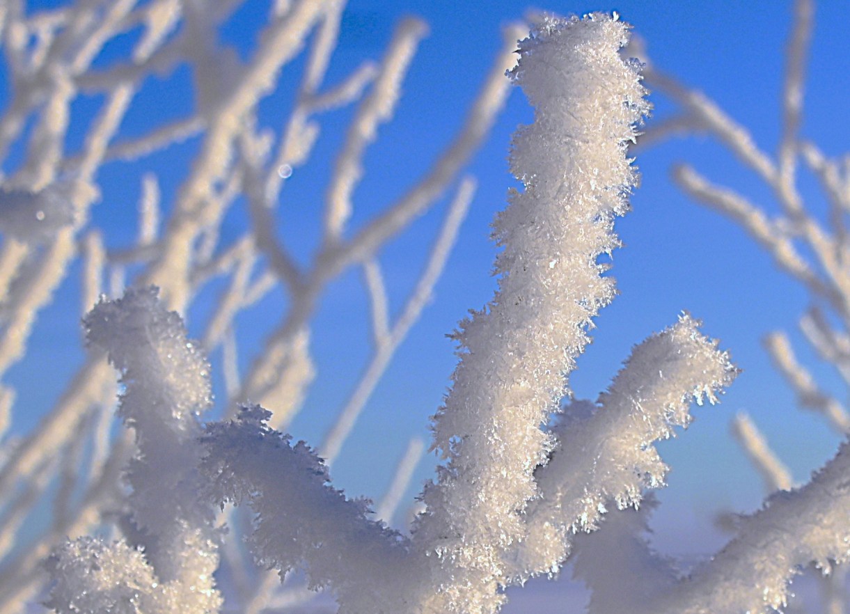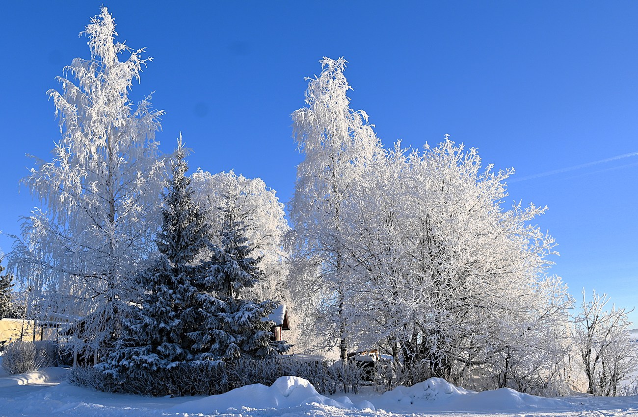 Visst händer det att det blir dim- eller rimfrost även här och det är verkligen fantastiskt vackert. Hittills har vi knappt haft frost ens men än är inte vintern slut.