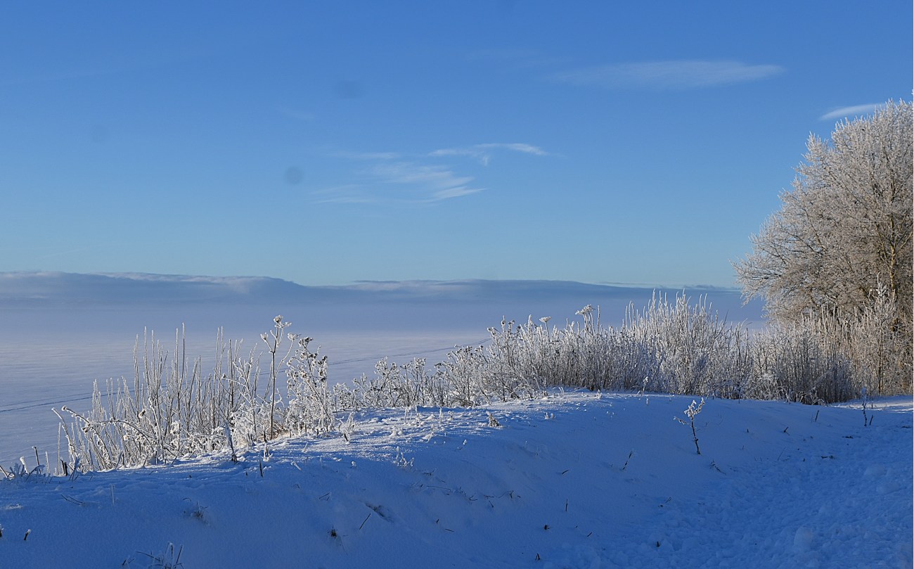 Jag klarade inte av att stanna hemma och bara titta ut genom mina fönster. Jag tog bilen till några av de platser jag gillar här i närområdet. Första bilden är från i morse, eller rättare sagt från när morgonen mötte förmiddagen. Resten av bilderna är från min lilla miniroadtrip senare idag. Det funkade bra att göra så och det blev inte många steg sammanlagt. Nu fick jag i alla fall njuta lite av en fantastisk vinterdag och andas in den krispiga luften. Dimman ville inte lätta helt men inte gjorde det mig något. Den förbättrade upplevelsen.