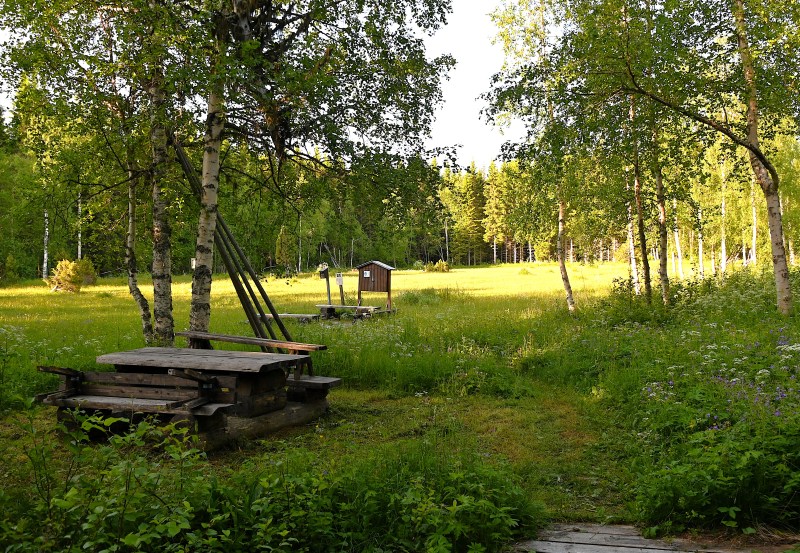En kort stig ledde fram till den glänta där spångar är utlagda och där man ombeds att hålla sig på dem för att inte förstöra något.