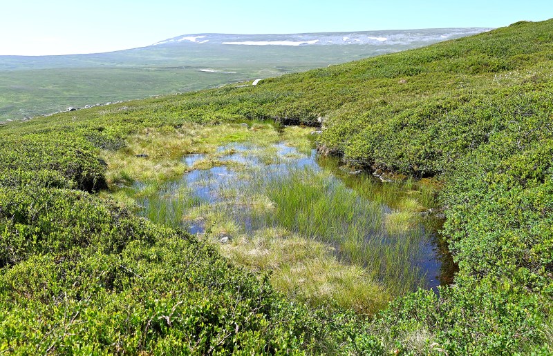 Vi kom till en liten bäck och min son fyllde på sin vattenflaska. Fjällbäckar är ofta så rena att vattnet håller hög kvalitet.