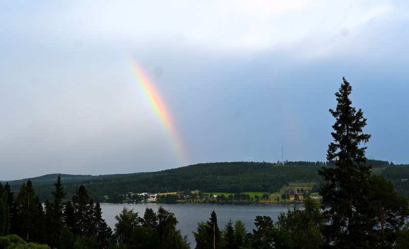 Egentligen borde rubriken ha något med mat att göra men nu blev det i stället att brandrisken är obefintlig för tillfället. Efter regn blir det ibland en regnbåge och en liten regnbågsstump syntes här utanför i förrgår. Så nu stämmer i alla fall början och slutet på inlägget med rubriken.