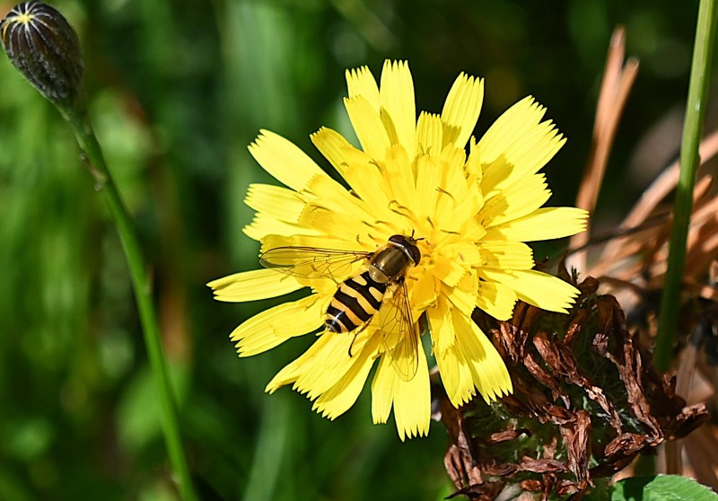 Blomflugorna finns i nästan alla gula blommor. Någon humla syns här och där också men de är i minoritet.