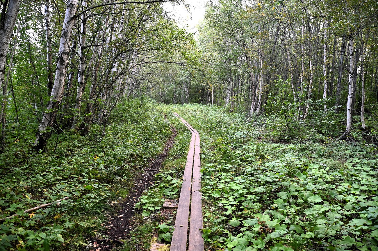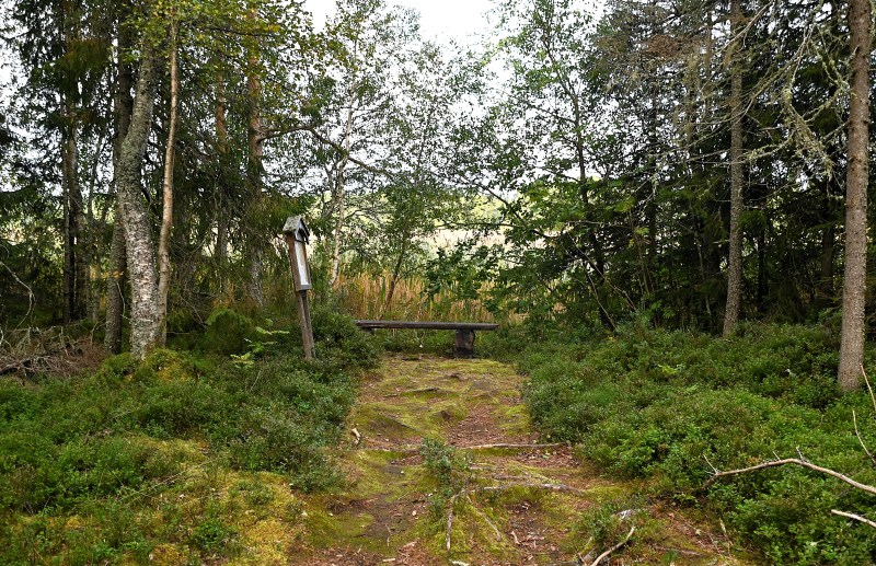 Jag hade tänkt gå den här rundan redan igår men just när jag skulle göra mig i ordning så kom det en regnskur. Då valde jag att skjuta upp svampletningen en dag. Det kan nämligen bli väldigt lerigt bitvis på den här stigen. En hel del partier är spångade och ibland förstår jag inte varför. Men när det ligger spångar över lera eller små vattensamlingar är jag tacksam för att de finns där.