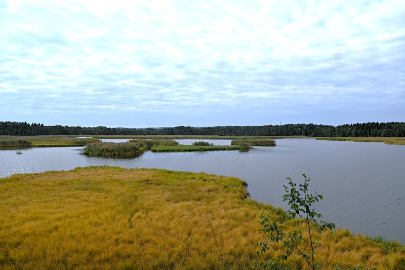 Sjön är ofta dold bakom skog och vass så det här är ingen runda man går för att ha sjön att titta på.