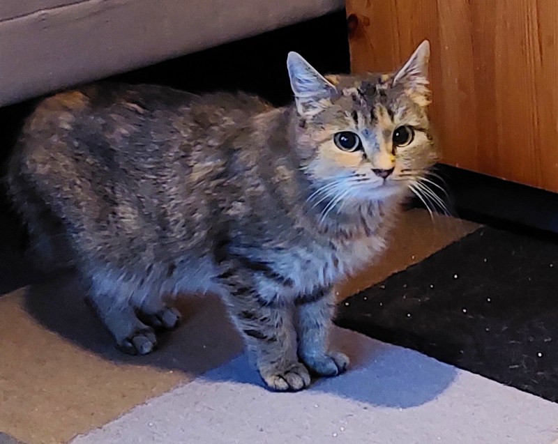 Efter lunch och fika följde vi med min äldsta dotter hem och fick träffa de tre katter hon just nu är jourhem åt. Kiara tog sin tillflykt upp på en garderob. Alla tre katter är trygga med min dotter och ligger gärna på eller bredvid henne men jag och min son var tydligen farliga.