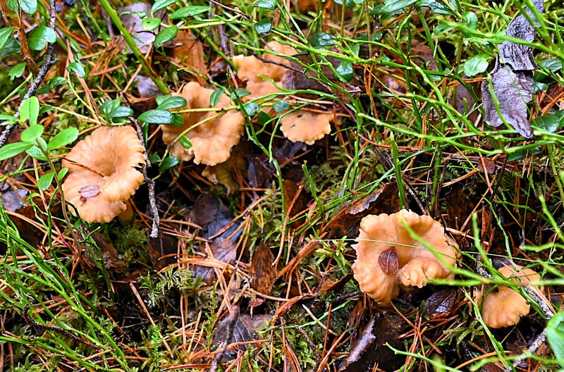 Plötsligt fick jag syn på några trattisar precis bredvid stigen.