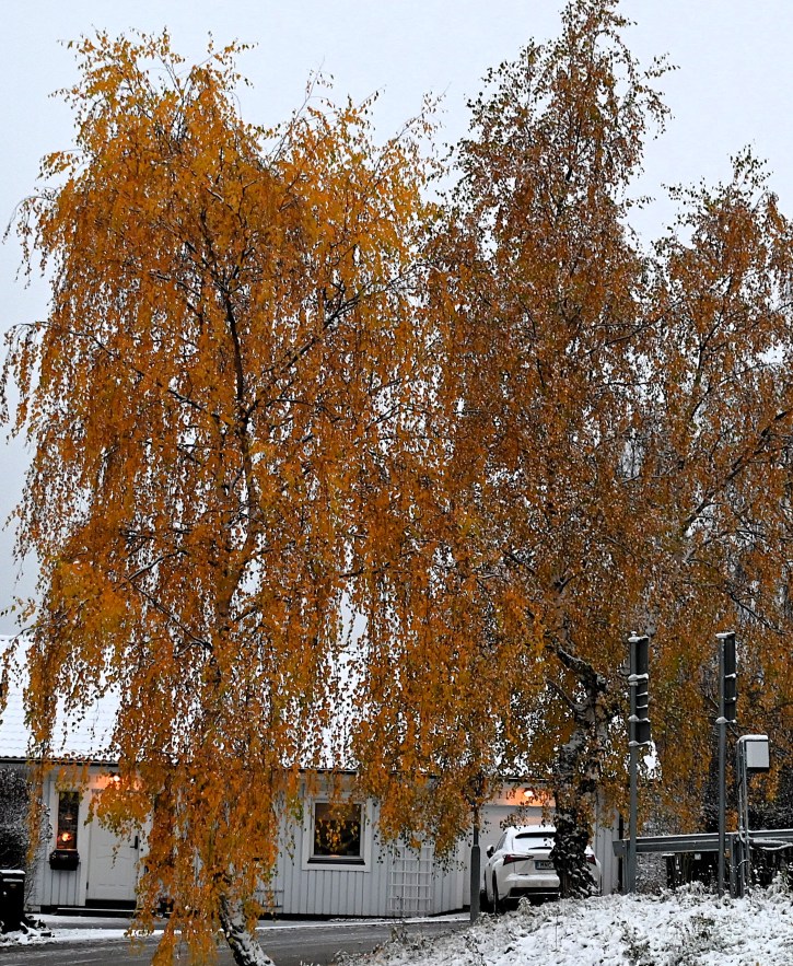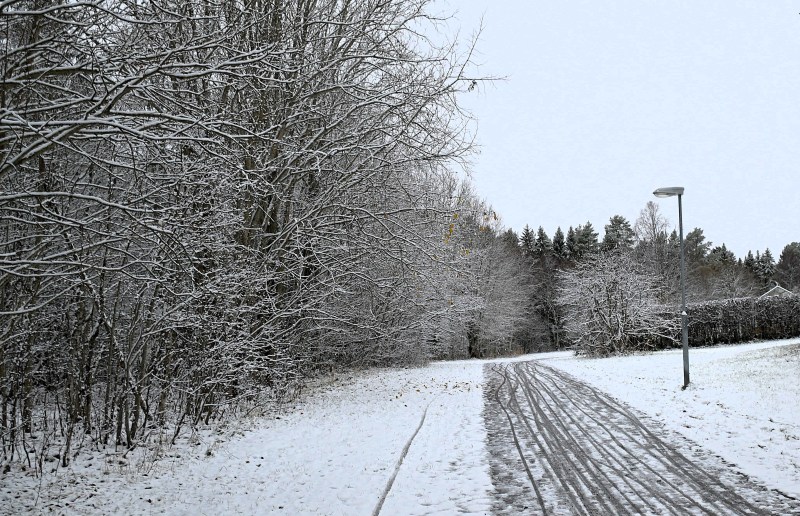 Det finns inte så mycket att säga om den mer än att den kom och nu smälter den snart bort. Det är precis som det ska vara. Det sägs ofta att det ska snöa tre gånger innan det blir ett snötäcke som stannar kvar. Som ni vet så gillar jag snö men jag vill helst att det ska bli rejäl tjäle i marken först så att snön får ett hårt och bra underlag. Så ser det inte ut att bli den närmaste tiden utan det ska bli ömsom regn och ömsom sol. Sedan kommer några minusgrader så kanske kan jag ändå hoppas på åtminstone hårda stigar utan lera till första advent. Då vill jag gärna även ha gott om snö men det är kanske att begära för mycket.