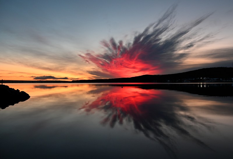 Ja, dÀr hade jag tur som kom ner till sjön just nÀr det sÄg ut sÄ hÀr. Bara en liten stund senare var allt det röda borta. Jag blev sÄ glad för speglingen i sjön.