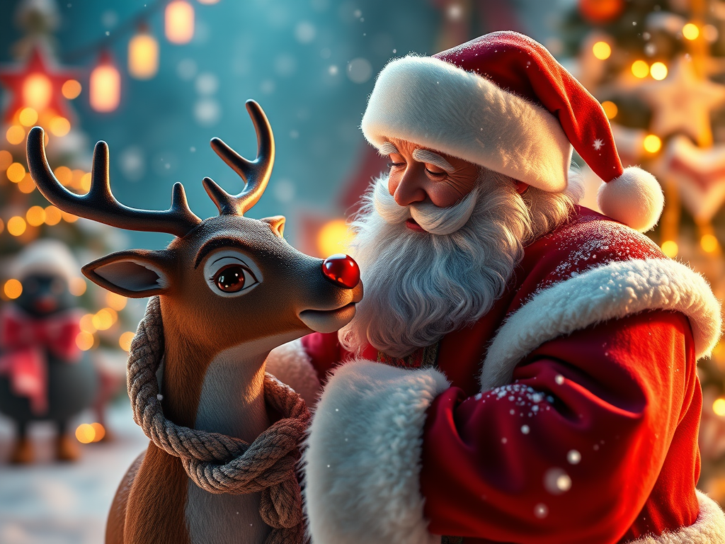 Jag bad AI om hjÀlp med att skapa fina julkort med tomten och Rudolf och jag fick svÄrt att vÀlja mellan de hÀr tvÄ resultaten. Jag gillar den första men kan inte riktigt förstÄ eller gilla att Rudolf har ett rep runt halsen och tomten har dessutom inga hÀnder. Men glÀdjen och kÀrleken mellan de tvÄ Àr tydlig och det fÄr mig att le nÀr jag ser dem.