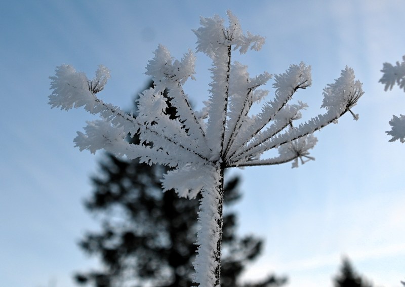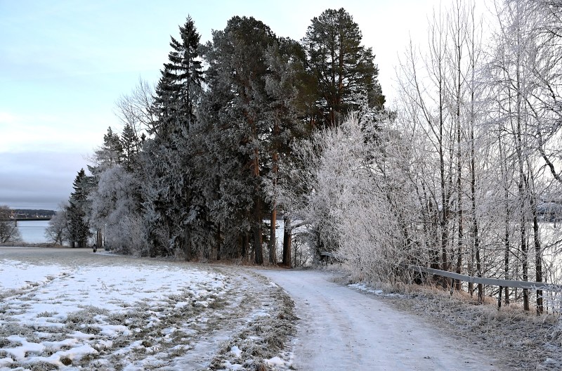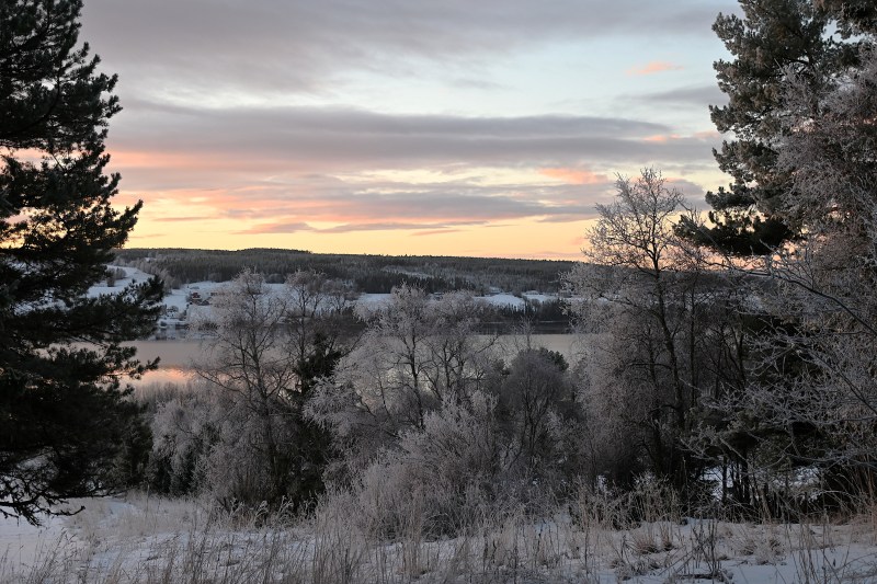 På kvällen dan före dan före dopparedagen drog dimman in över Annersia och stora delar av Frösön. Det gav mig hopp om att julen ändå skulle kunna bli vit och vacker. Mina förhoppningar visade sig bli uppfyllda för när jag vaknade på morgonen var min lilla värld täckt av dimfrost. Vilken tur att dimman kom tillsammans med minusgrader. Båda mina äldsta barn kom med tåget den här dagen. Först kom min son och jag tog en promenad för att möta honom. Han vill oftast promenera från stationen och numera är buss det enda alternativet till att gå.