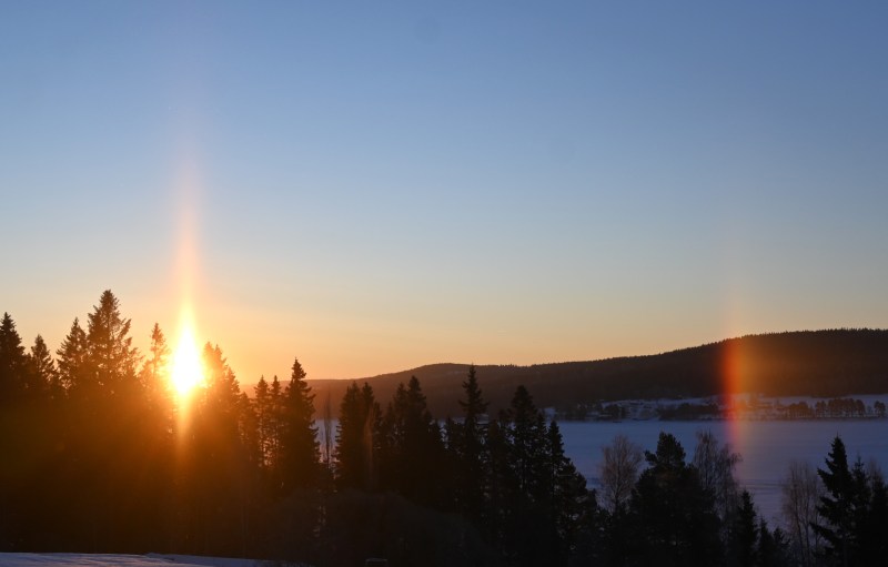 Det här börjar bli lite tjatigt och ändå har jag inte sett alla halos eller ens visat alla jag har sett. När det ljusnade i morse såg det ut så här.