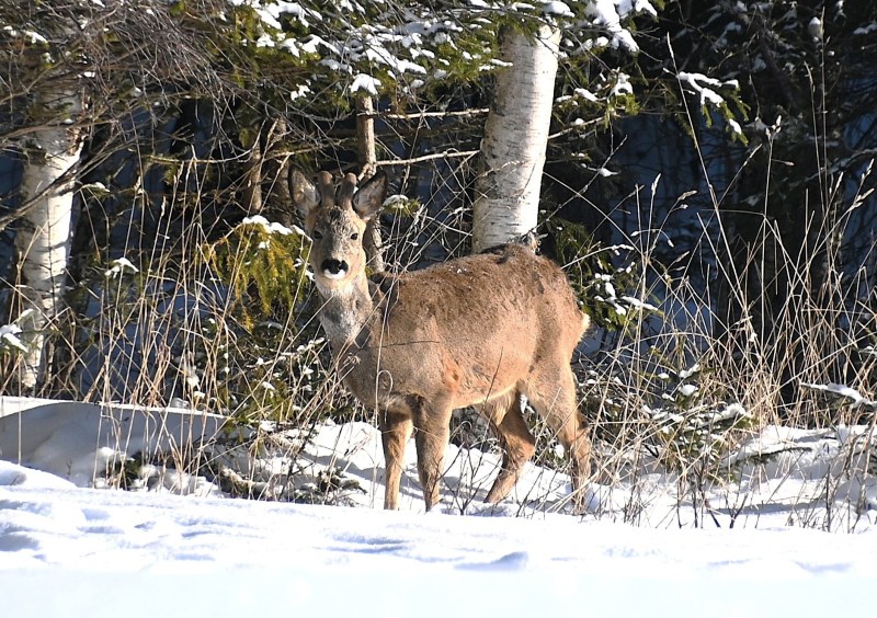 I fb-grupper från min del av Frösön har det skrivits ganska mycket om att älgar har synts till i bostadsområdena. Både bilder och filmer har visats och även ovanför samlingslokalen i mitt område har de varit. Jag har dock inte sett dem men idag tänkte jag att jag skulle gå ut och spana lite efter dem. Det har ibland varit 4 älgar tillsamman och ibland 3. Jag mötte en kvinna med en hund och vi pratade en liten stund. Hon sa att älgarna ofta syns i ett litet skogsparti och jag visste precis var hon menade. Men dit går det ingen stig eller gångväg utan den lilla skogen ligger mellan två bilvägar som går ihop åt ett håll och åt andra hållet är det staket. Kanske är det där de håller till dagtid och när mörkret kommer så vågar de sig in mellan husen och mumsar på diverse träd och buskar. Jag fortsatte i alla fall att spana och jag valde att gå där jag vet att älgarna har varit. Jag såg spår efter dem men tyvärr var det allt jag fick se. Jag får väl vara glad över att jag faktiskt har sett en hel del älgar tidigare…men mycket vill ha mer. Några rådjur såg jag i alla fall men det gör jag ju väldigt ofta.