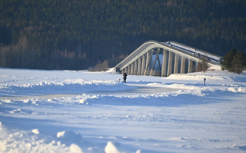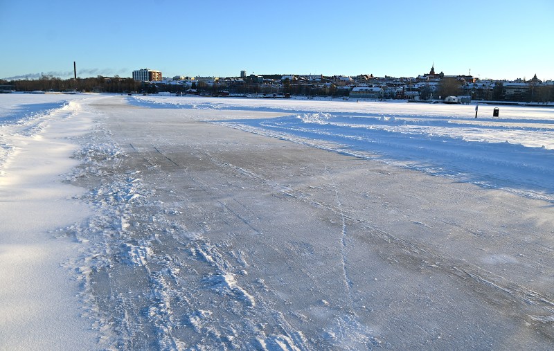 En ryggsäck med en extra påse i fick hänga med och när jag kom hit till vägskälet på isen så kände jag att det fanns en hel del krafter kvar. Men självklart skulle jag ta bussen hem. Isvägen jag vek av in på går en bit in i Brunfloviken, jag tror att den börjar/slutar någonstans vid Ope. Jag lämnade alltså den ganska snabbt och hoppades på att snön inte skulle ge mig alltför stora problem. Det gick bra och det var en del skare som gjorde att jag knappt sjönk ner alls. Hemifrån mig tog det ca en och en halv timme att komma till Willys och så länge genvägen över isen finns så kan jag gärna ta den promenaden igen.
