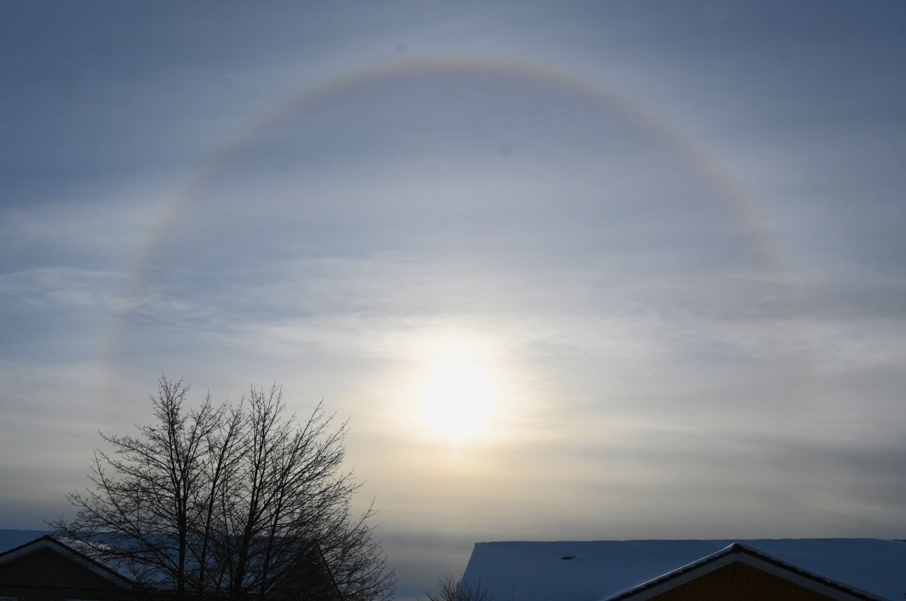 Det här är en riktig halovinter och de verkar inte sluta visa sig. Inte en jätteskarp halo den här dagen men i stället en hel cirkel.