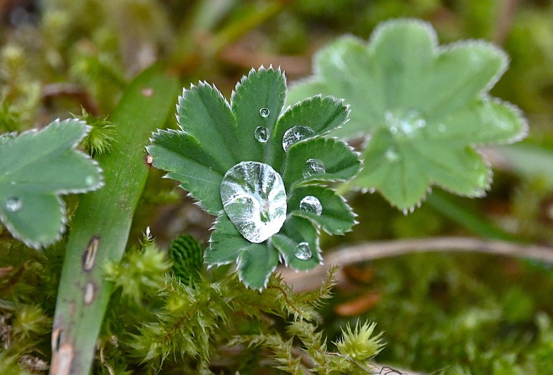 Daggkåpor är väldigt bra på att fånga och ha kvar droppar. Den här gången är det inte dagg i kåpan utan en liten rest från en regnskur igår.